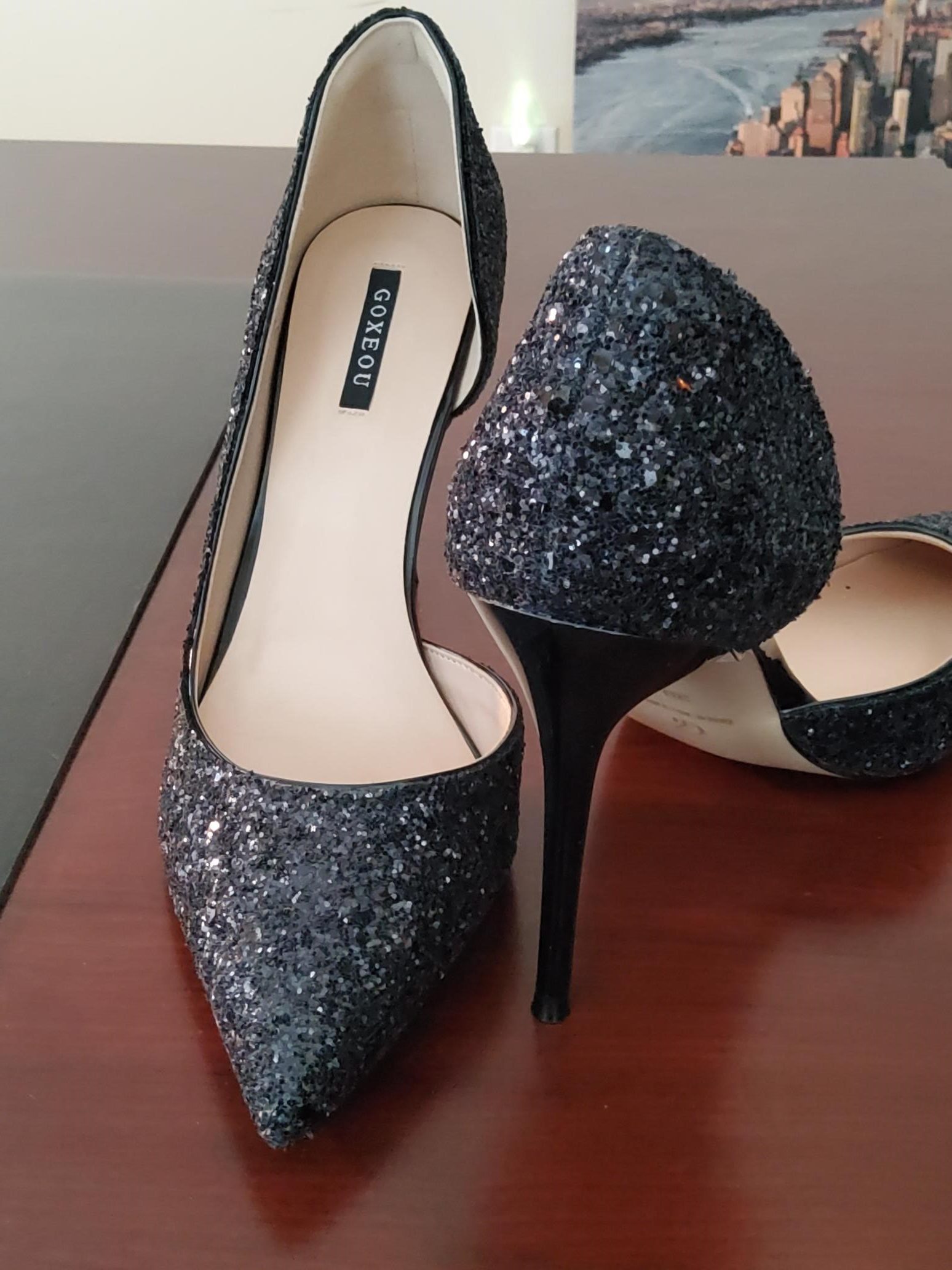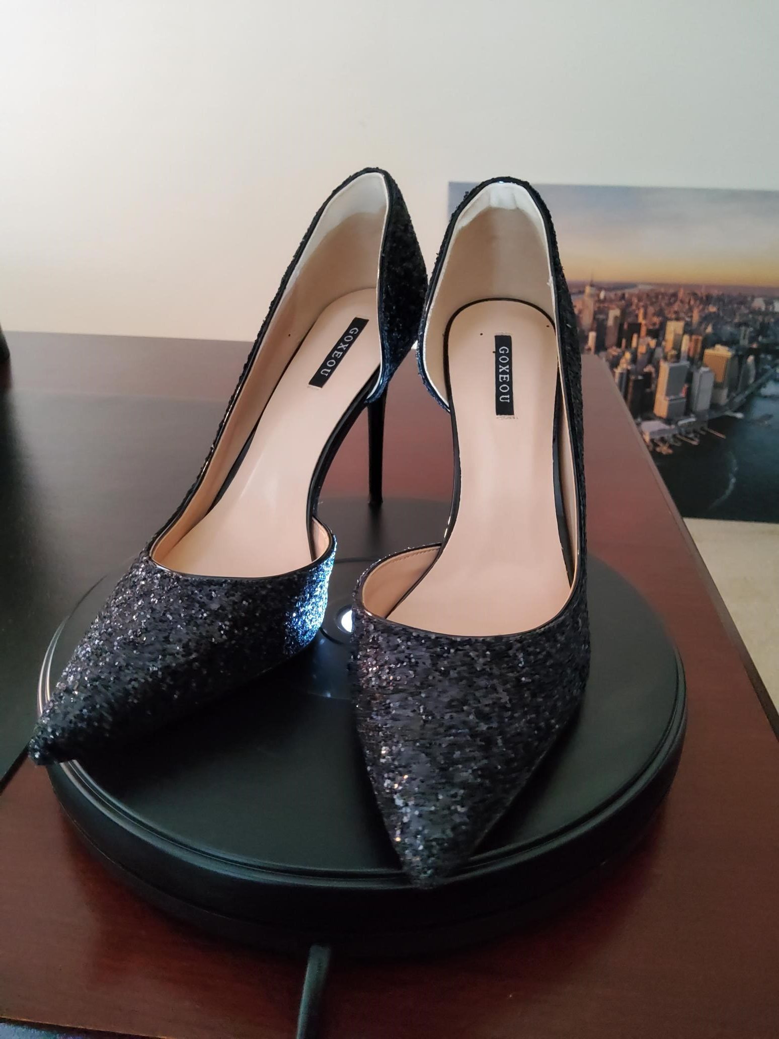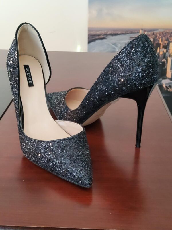 Elegant Black Glitter Evening High Heels